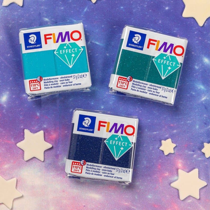 Mit FIMO® effect verleiht deiner Knetkunst das gewisse Etwas: Deine Kreationen glänzen, glitzern und schimmern. Erhältlich in vielen verschiedenen Farben und Effekten, wie z. B. nachtleuchtend oder Glitterfarben, eröffnet dir FIMO® effect ganz neue Möglichkeiten!